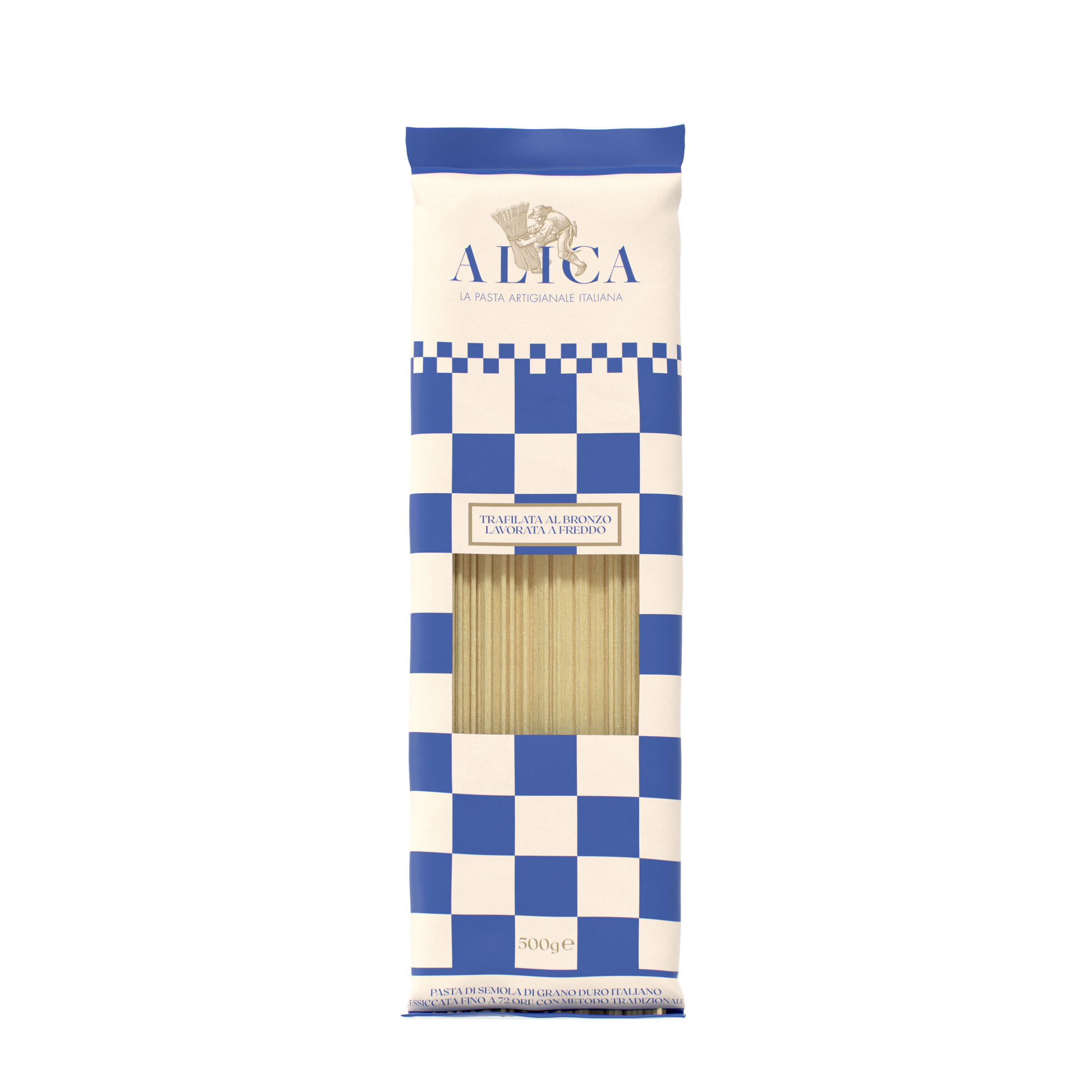 Pasta Alica wird aus bestem Weizen hergestellt, der vor allem in der Tavoliere delle Puglie und in der Basilikata angebaut wird. Die Ernte erfolgt dank kurzer Lieferketten, die die Arbeit der lokalen Bauern fördern. Wir verarbeiten ihn in Mühlen mit niedriger Mahlgeschwindigkeit zu Grieß und verwenden lokales Wasser bei maximal 25 Grad.