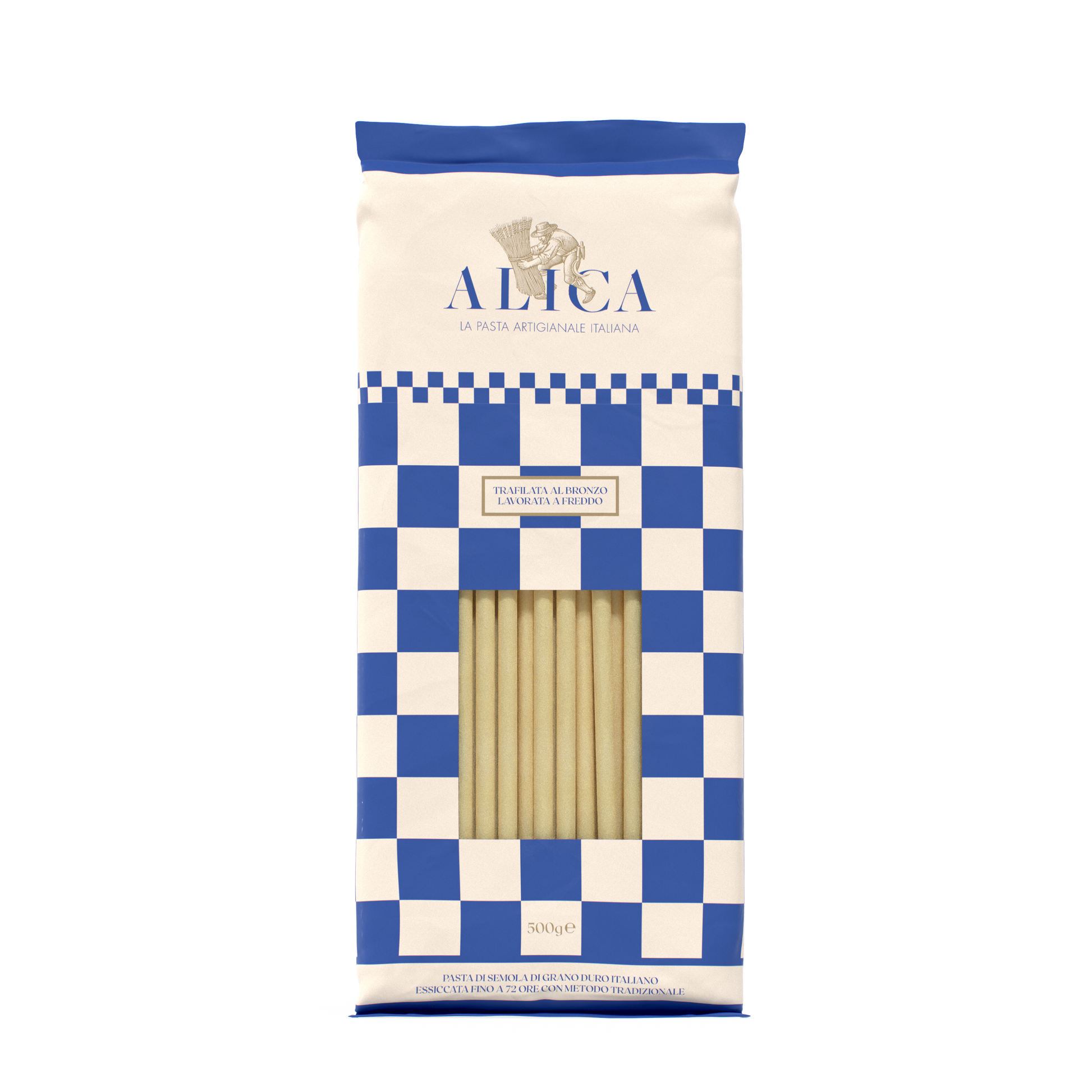 Pasta Alica wird aus bestem Weizen hergestellt, der vor allem in der Tavoliere delle Puglie und in der Basilikata angebaut wird. Die Ernte erfolgt dank kurzer Lieferketten, die die Arbeit der lokalen Bauern fördern. Wir verarbeiten ihn in Mühlen mit niedriger Mahlgeschwindigkeit zu Grieß und verwenden lokales Wasser bei maximal 25 Grad.